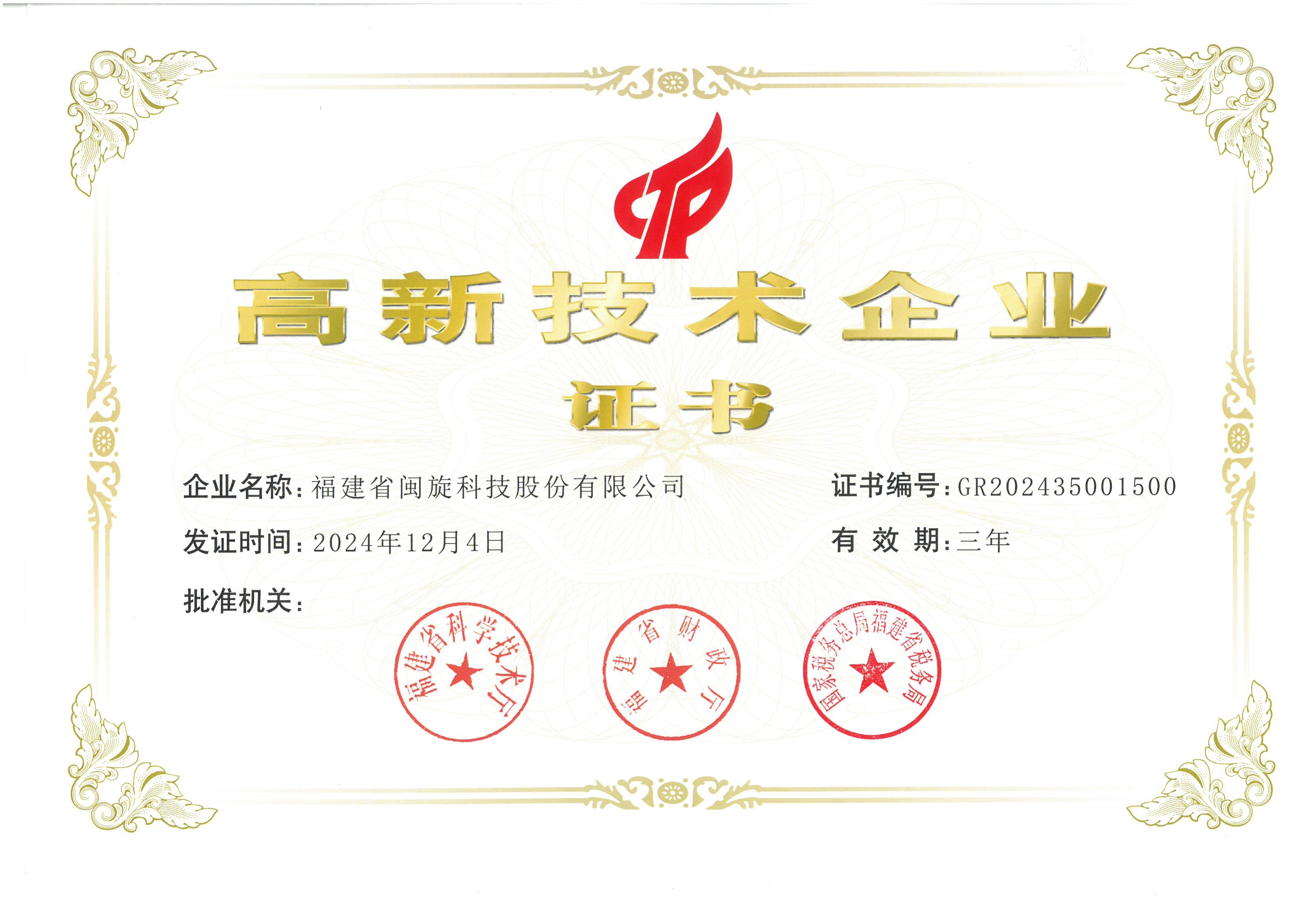 福建省科技型企业证书