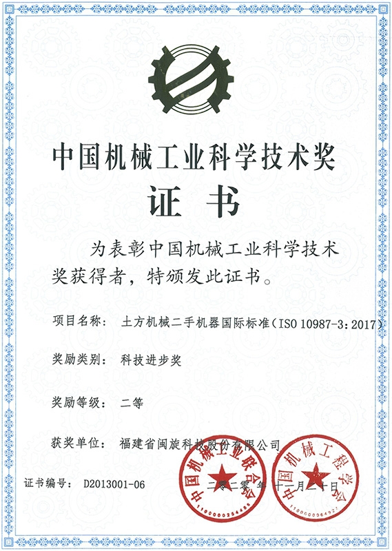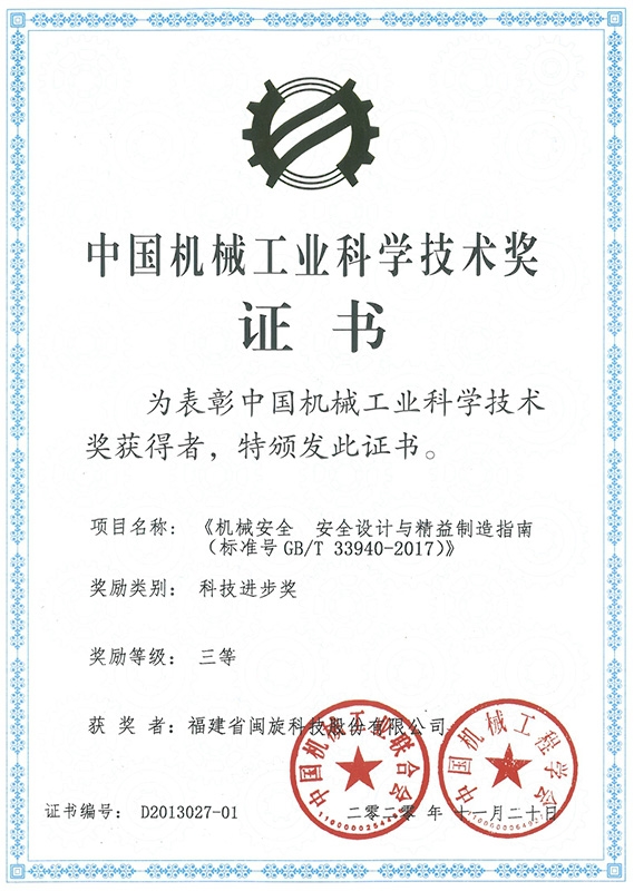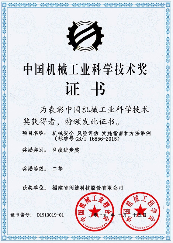 中国机械工业科学手艺奖证书